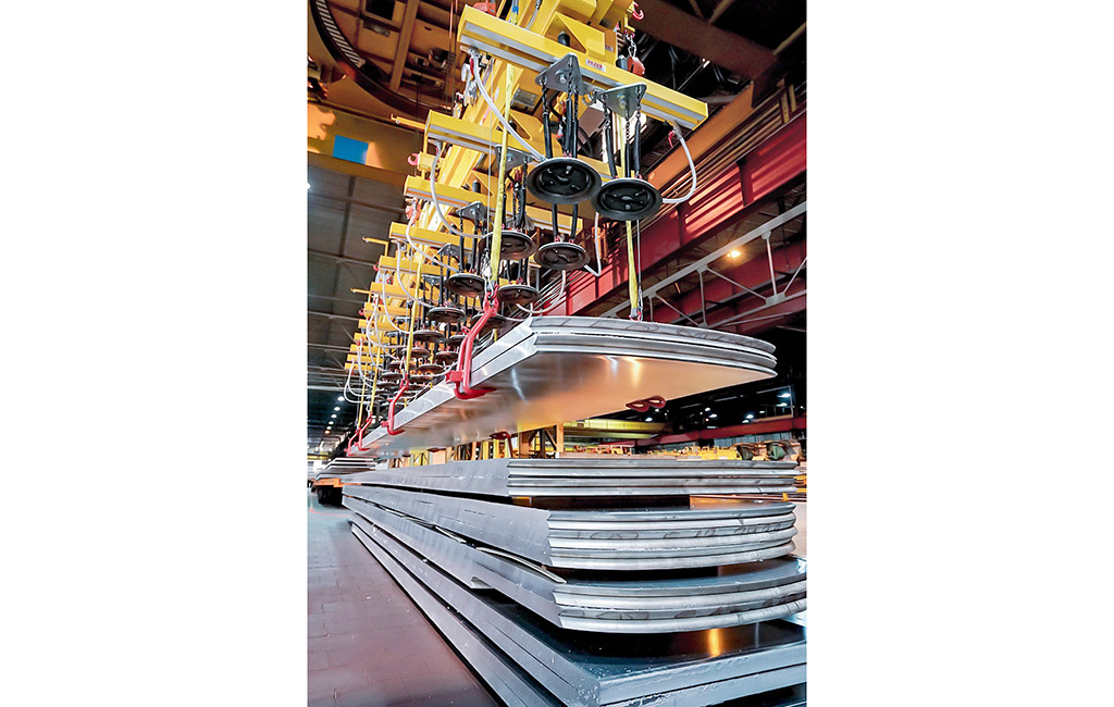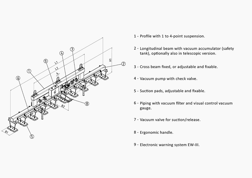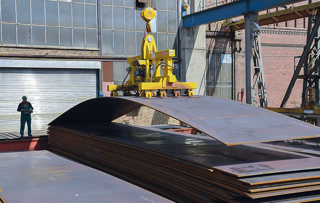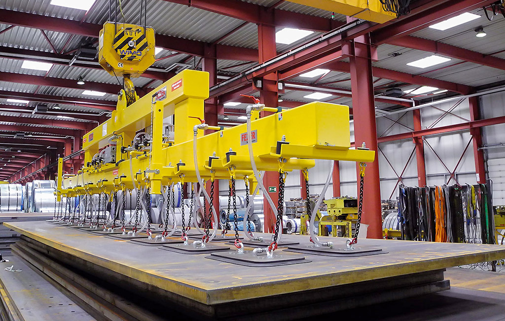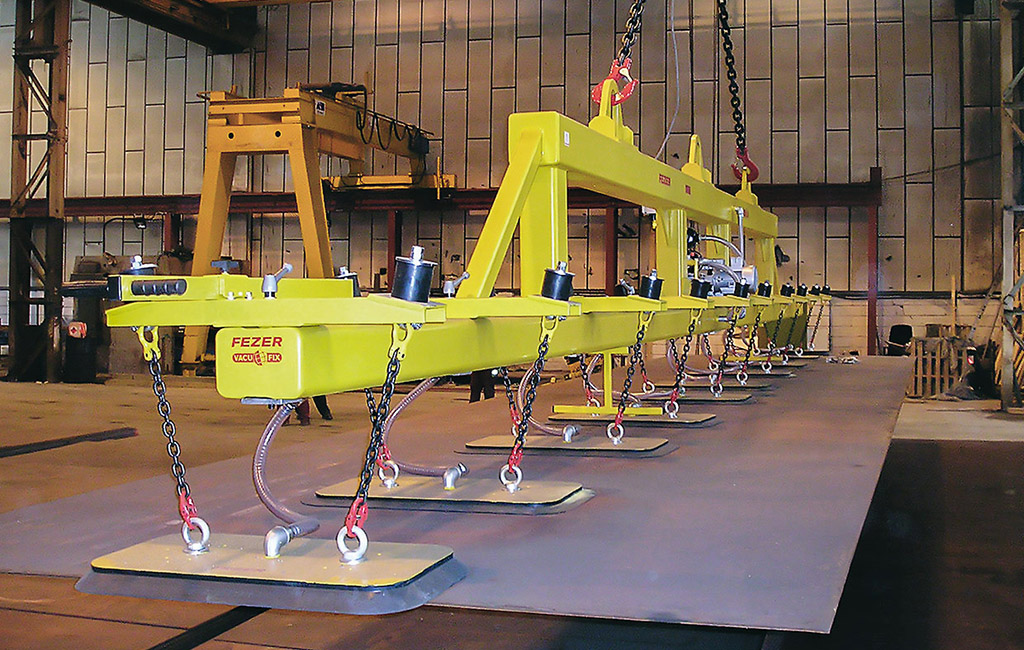 The vacuum lifter VacuGiant VG is part of Fezer’s line of heavy lifting solutions. The equipment is capable of moving loads horizontally, weighing up to 50 tons. Unique features allow this equipment to safely, easily, and steadily handle heavy items such as aluminum and steel plates, oxidized and flaked steel plates, checkerboards, and heavy-duty aluminum and steel blocks. Among these features are an integrated vacuum accumulator (safety tank) and an acoustic warning system.