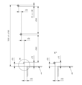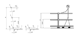 f)barra fixa no perímetro interno, na altura mínima de 990 mm, com projeção interna mínima de 50 mm a partir do limite do travessão superior do sistema de proteção contra quedas para o apoio e proteção das mãos e capaz de resistir aos esforços mencionados na alínea “g” deste subitem;