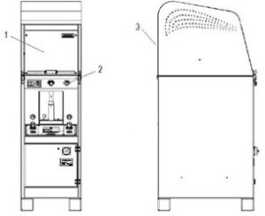 d)no mínimo, conjunto estrutural, piso e sistema de proteção contra quedas confeccionados em material metálico;