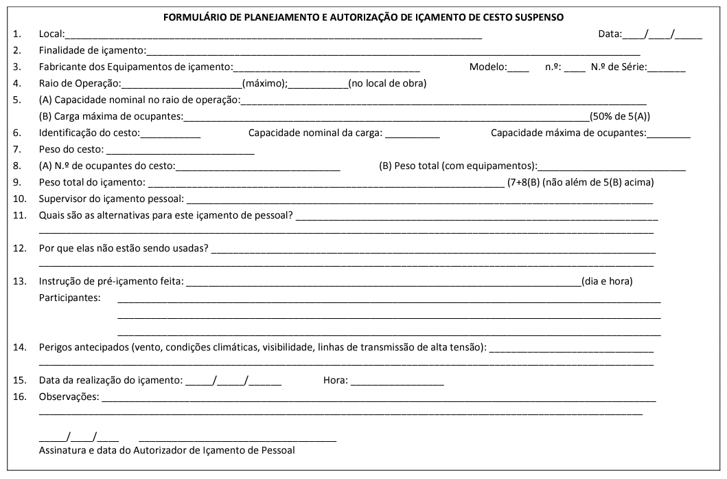 4.20 Sempre que o cesto suspenso sofrer alterações que impliquem em mudança das informações constantes da placa de identificação, esta deve ser atualizada.
